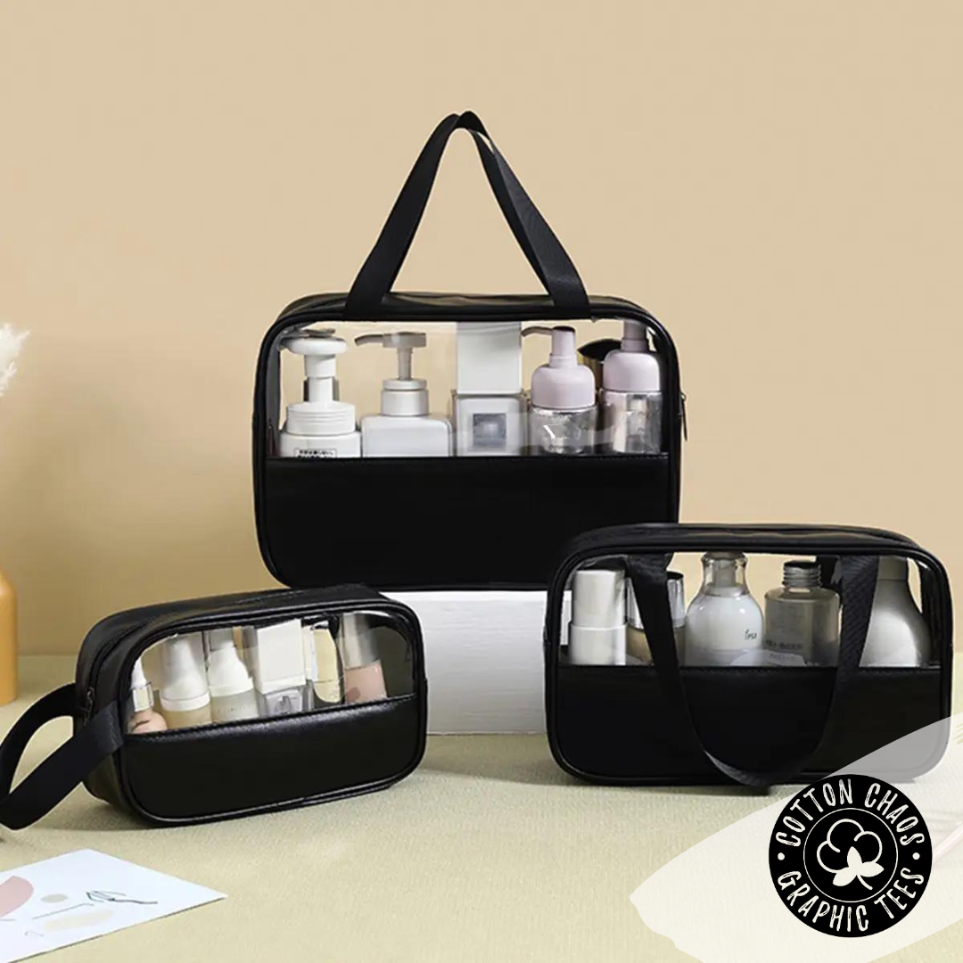 This 3 piece travel toiletry set is the perfect travel companion or gift. The set includes a back and clear bag for easy organization and portability. No more rummaging through your luggage for toiletries (or gifts). Bon voyage!