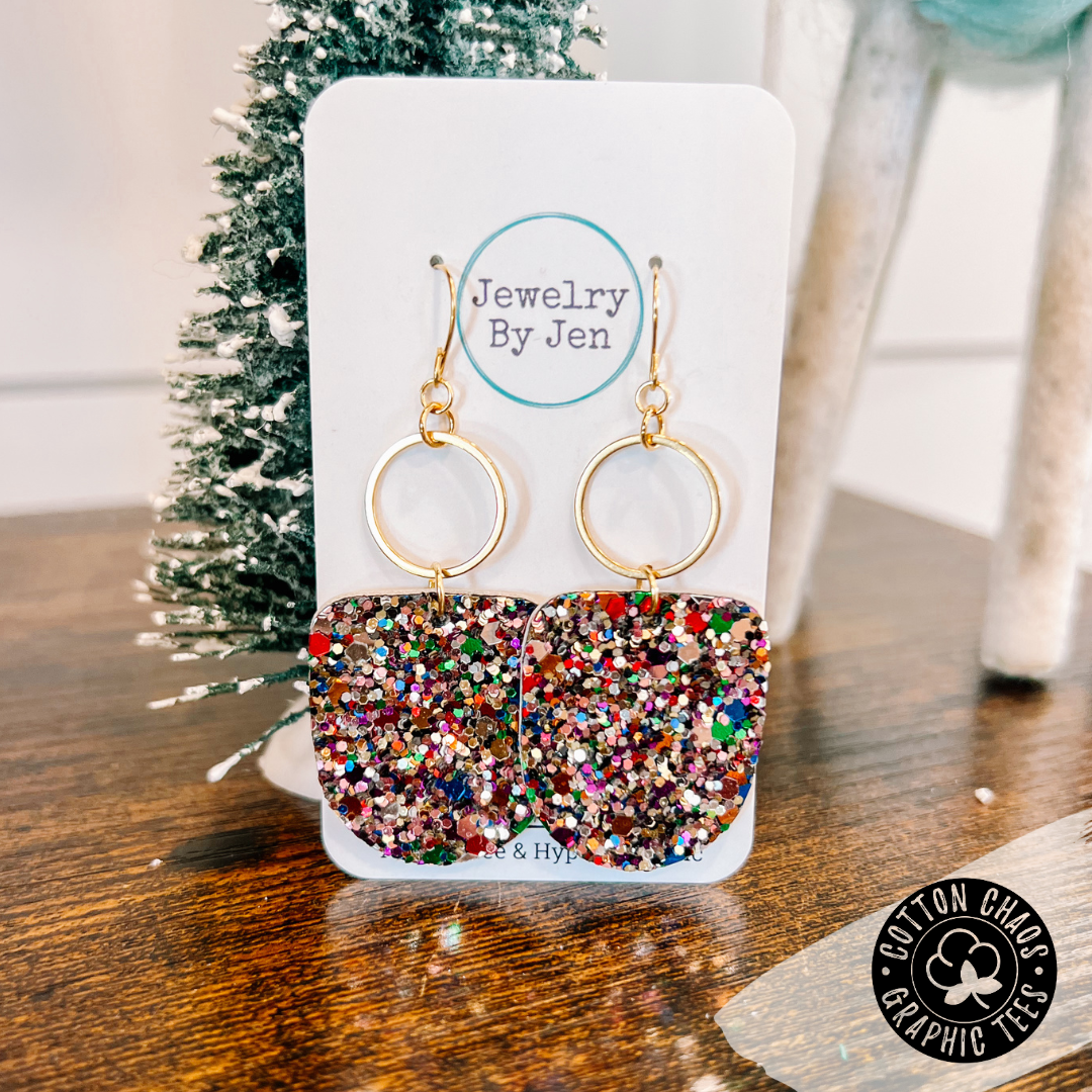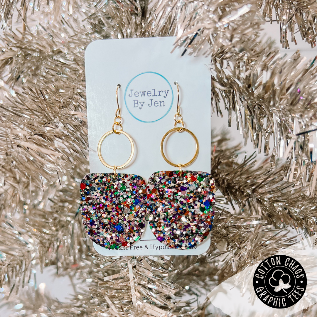 These Bojo earrings will shine like a sparkly diamond! Add some spark to your style with our Jewel Tone Glitter Earrings. They'll go with everything, so you can show 'em off any day! Jazz up any outfit and get ready to dazzle!