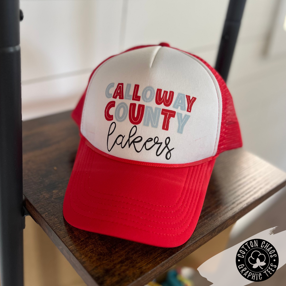 Make the Calloway County Lakers proud with the perfect accessory! Keep your head shaded in style with this one-of-a-kind white and red foam hat with a matching mesh snap back!